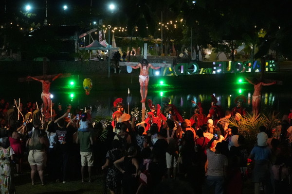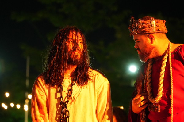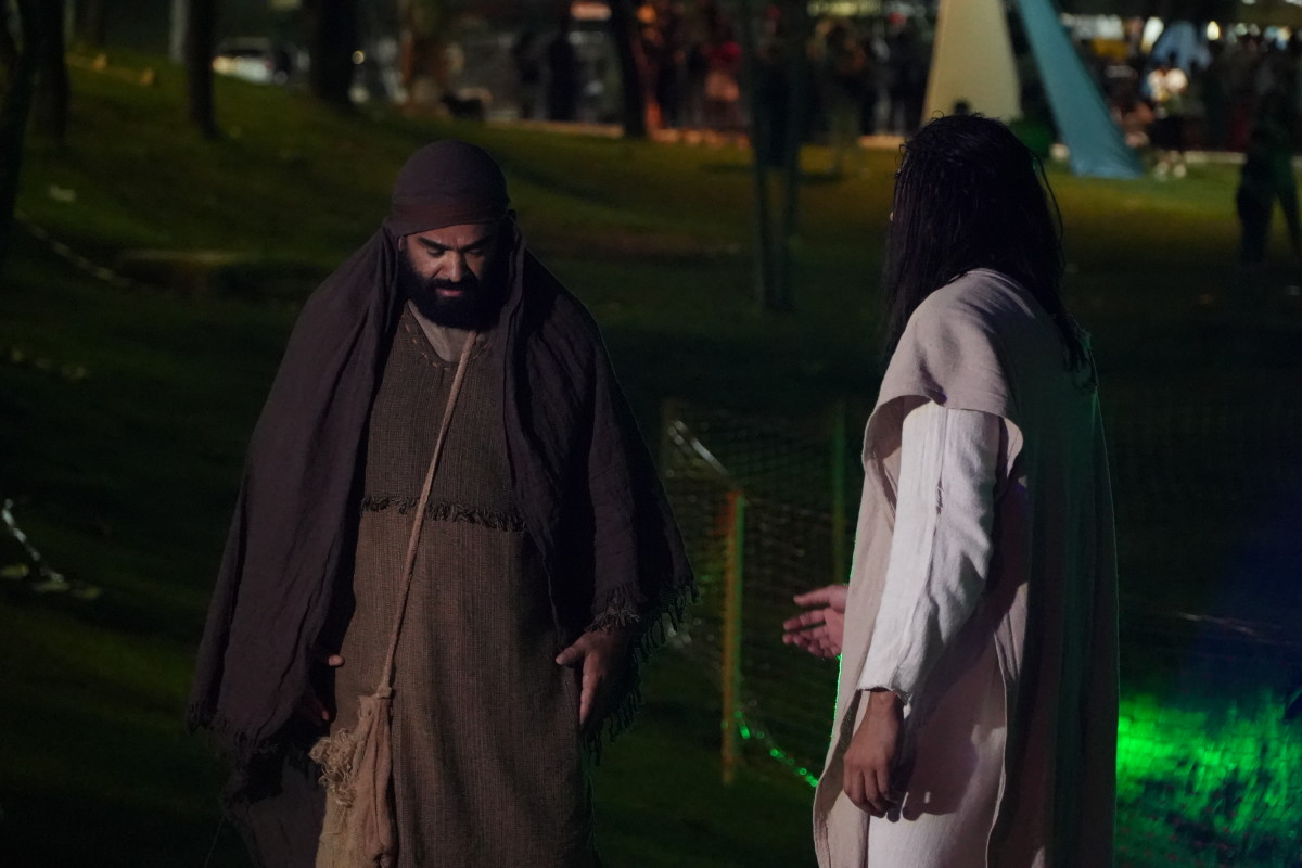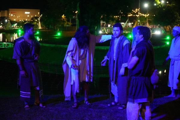 O Parque da Cidade se transformou em uma verdadeira cidade cenográfica a céu aberto durante a apresentaçãoPara quem estava em cena, o desafio foi tão grande quanto a emoção. O ator Marlon Moreira, que interpreta Jesus há dois anos, frisou a dedicação necessária para dar vida ao personagem. “Ano passado foi meu primeiro ano, então eu tive que me preparar tanto psicologicamente quanto fisicamente para estar apresentando esse espetáculo. E bate aquele nervosismo, mas faz parte”, contou. Ator frisou o quanto o apoio da Prefeitura tem fortalecido iniciativas culturais. “Acredito que a prefeitura está fazendo um excelente trabalho deixando a gente fazer essas apresentações aqui. Está de parabéns.”